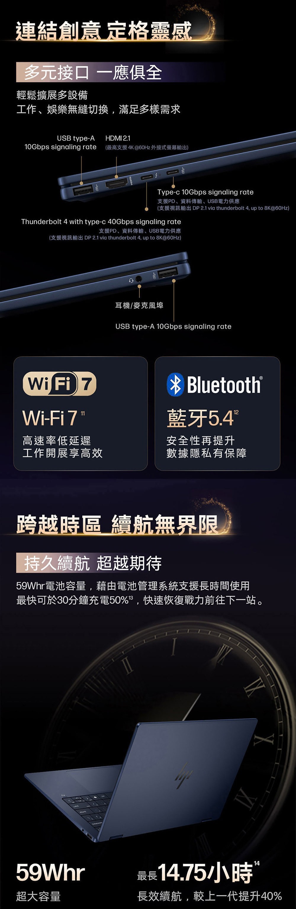 Type-C:1xThunderbolt440Gbps,1xType-C10Gbps,PD/資料/電力/DP2.1(最高支援8K@60Hz)