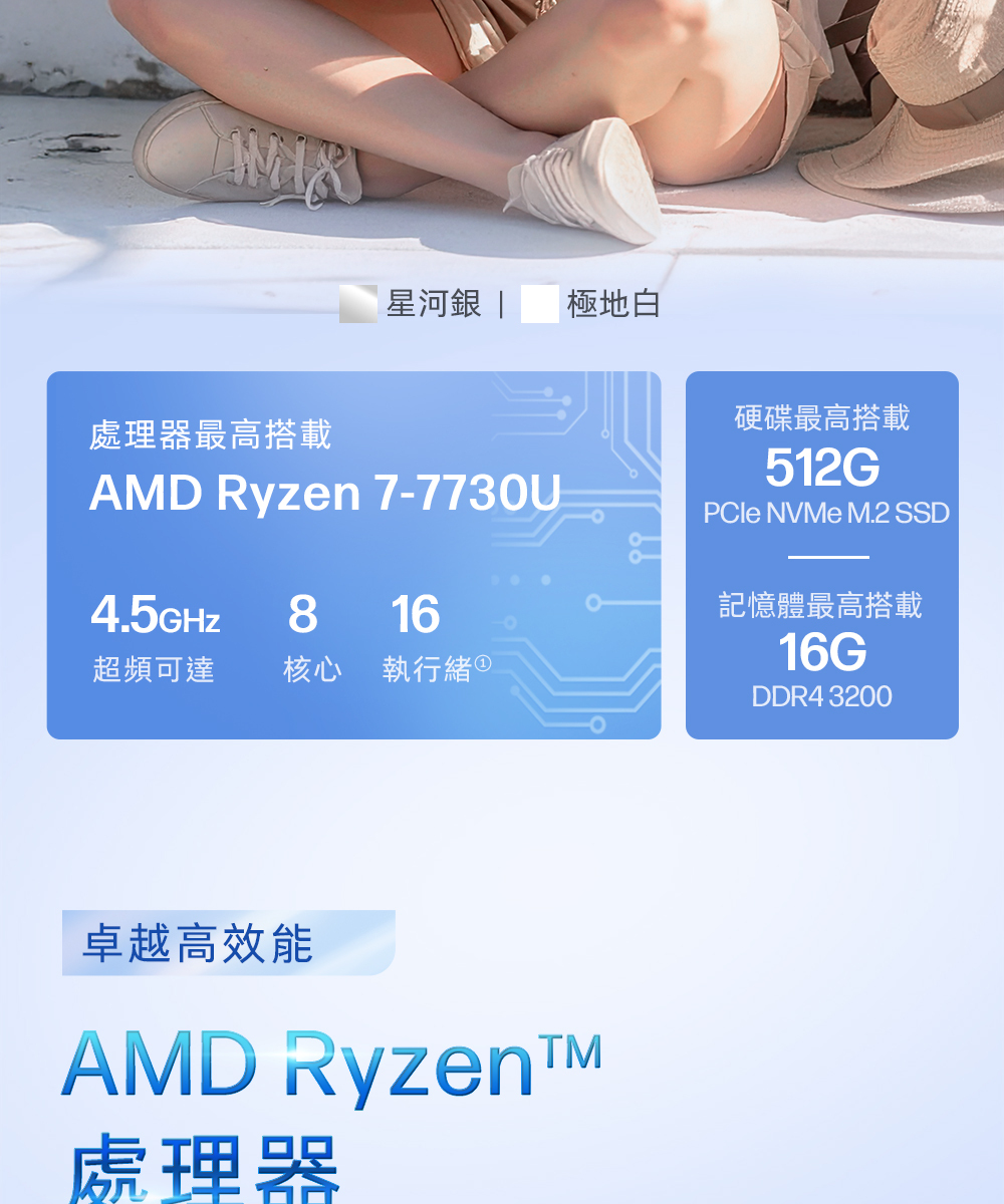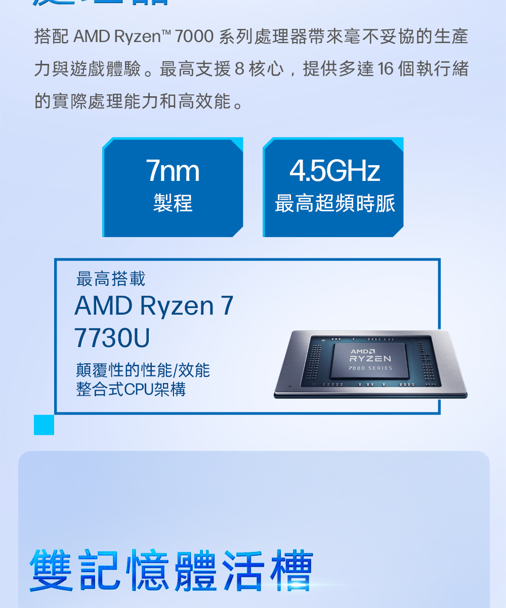 處理器:AMD Ryzen 7 7730U(2.0GHz up to 4.5GHz / 8核心16執行緒 / 16MB L3 Cache / TDP 15W)