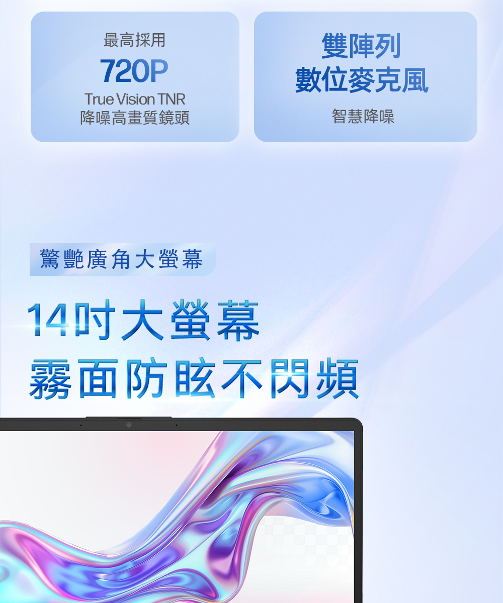 螢幕:14 吋 FHD (1920 x 1080) IPS 霧面防眩光 / 300 nits / 16:9 / 不閃頻