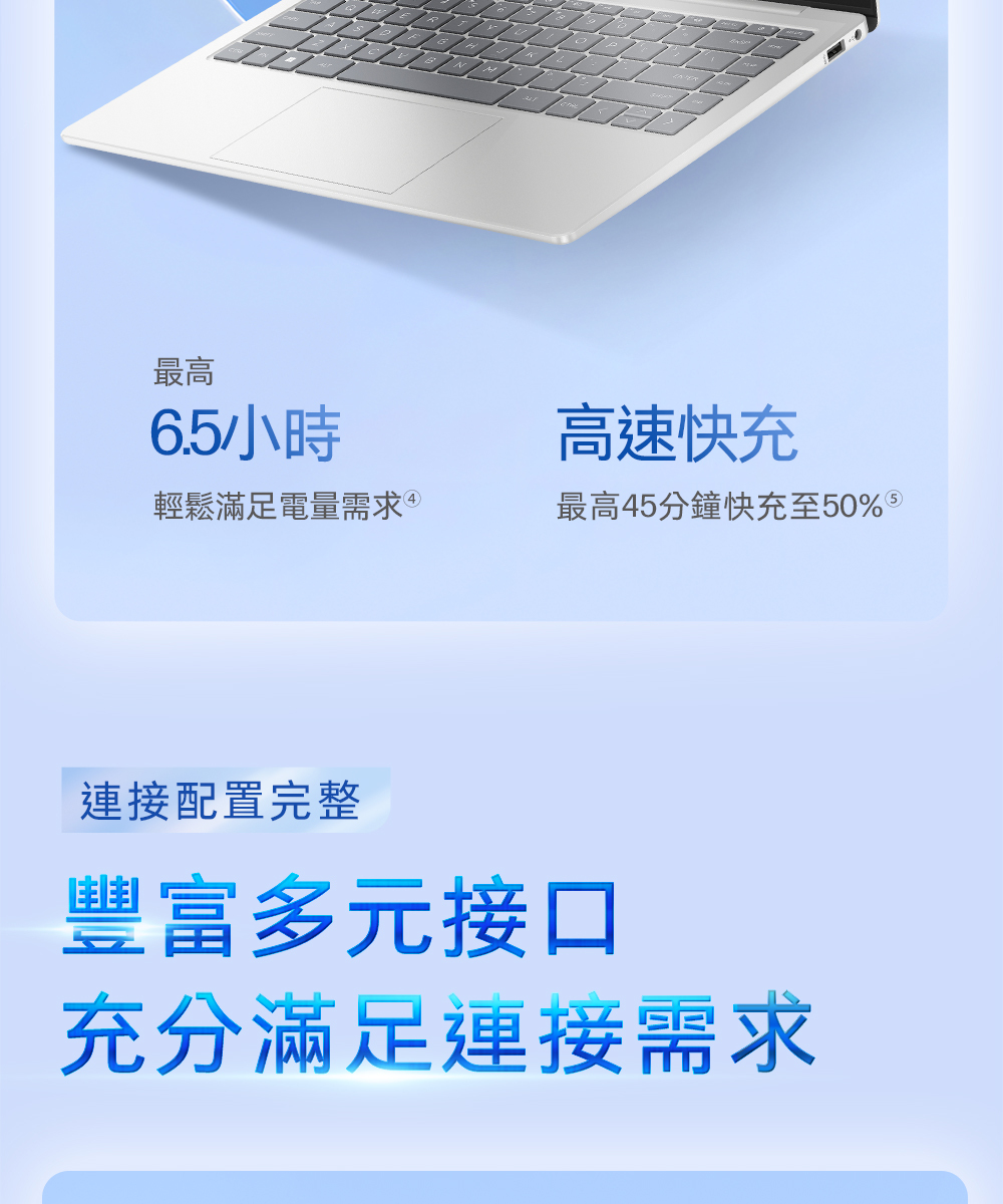 電池:3 Cell 41Whr(支援快充 45分鐘約50%)
