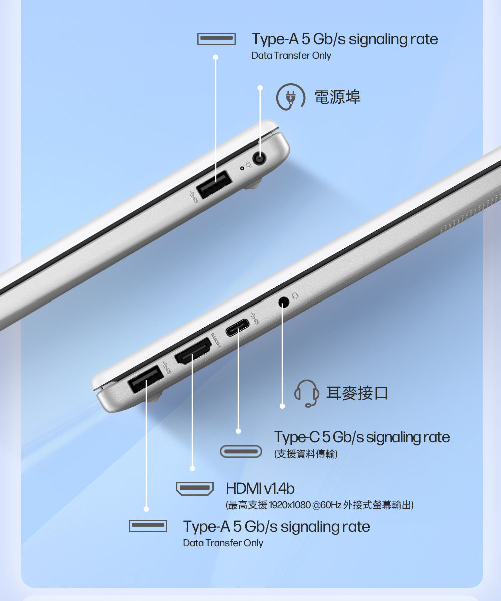 1 x USB Type-C 5Gbps(僅支援資料傳輸)