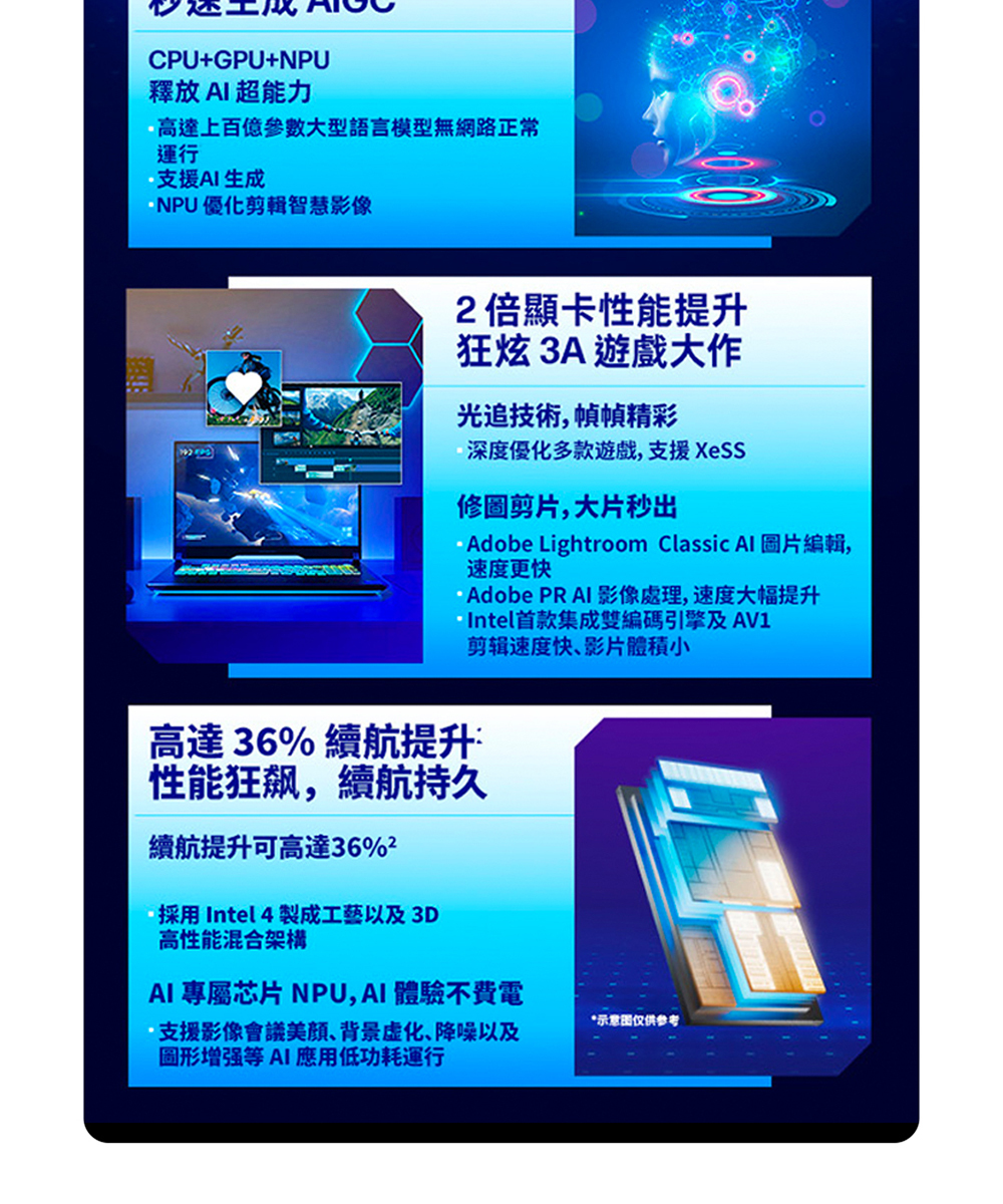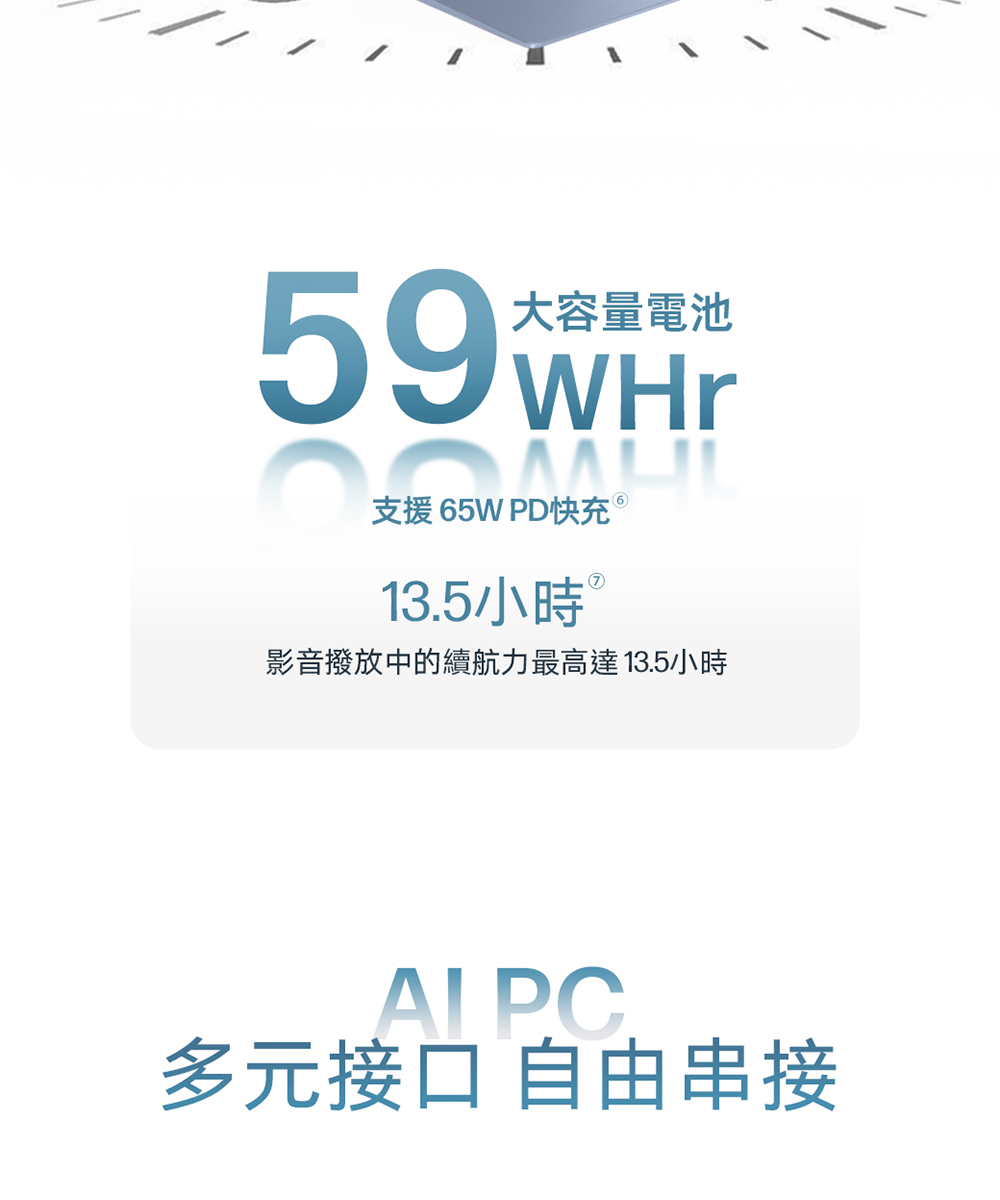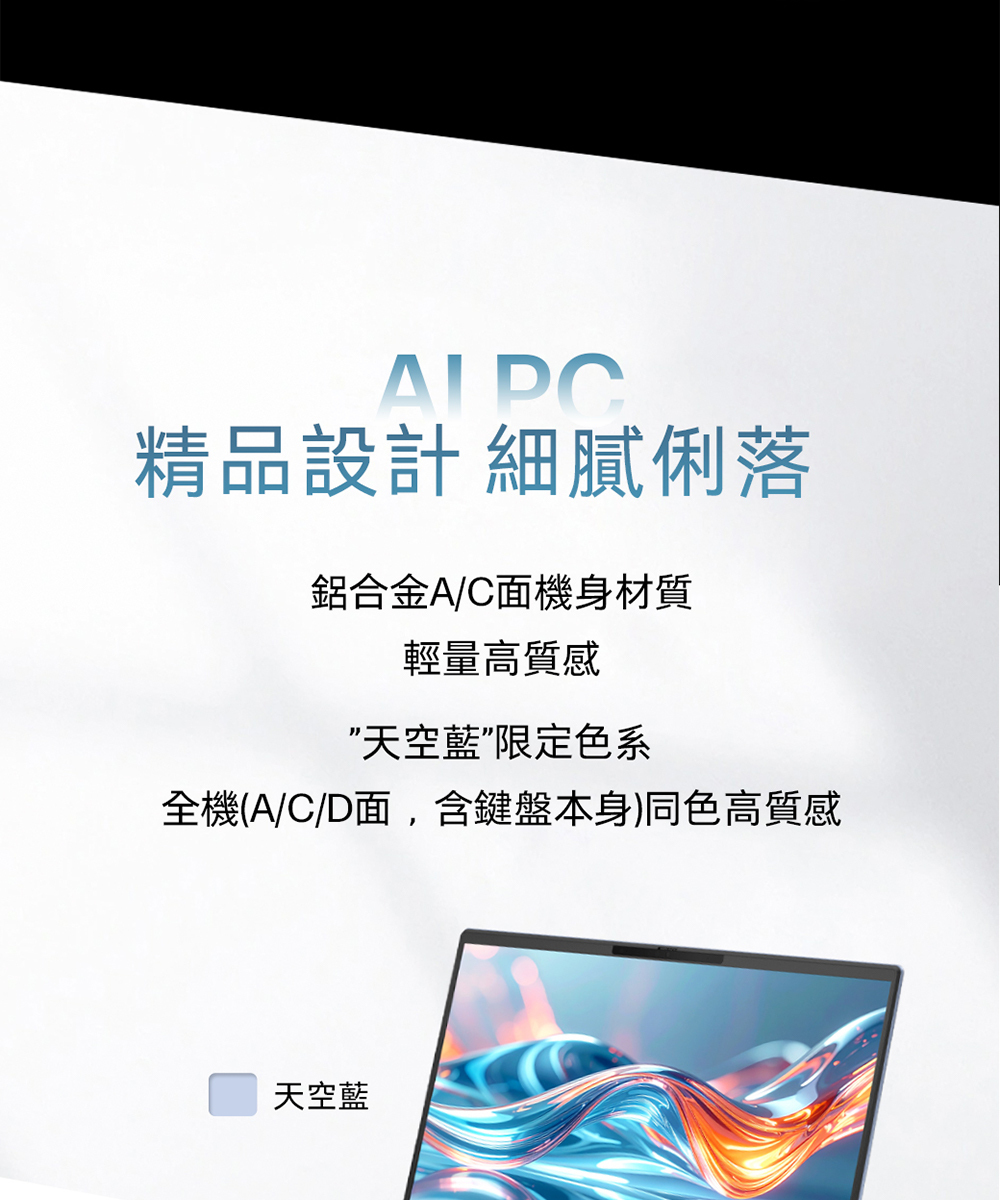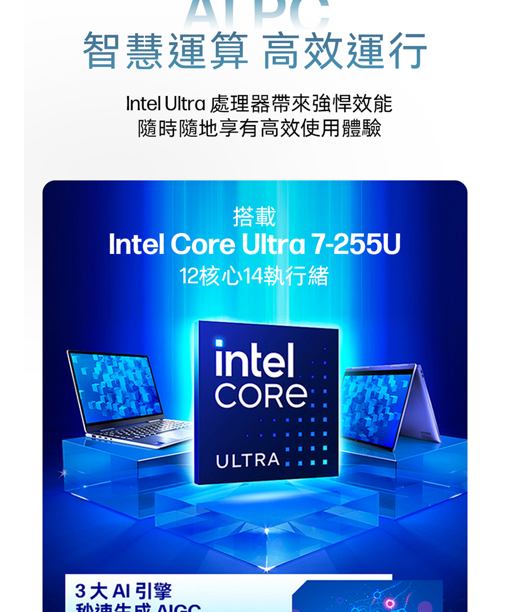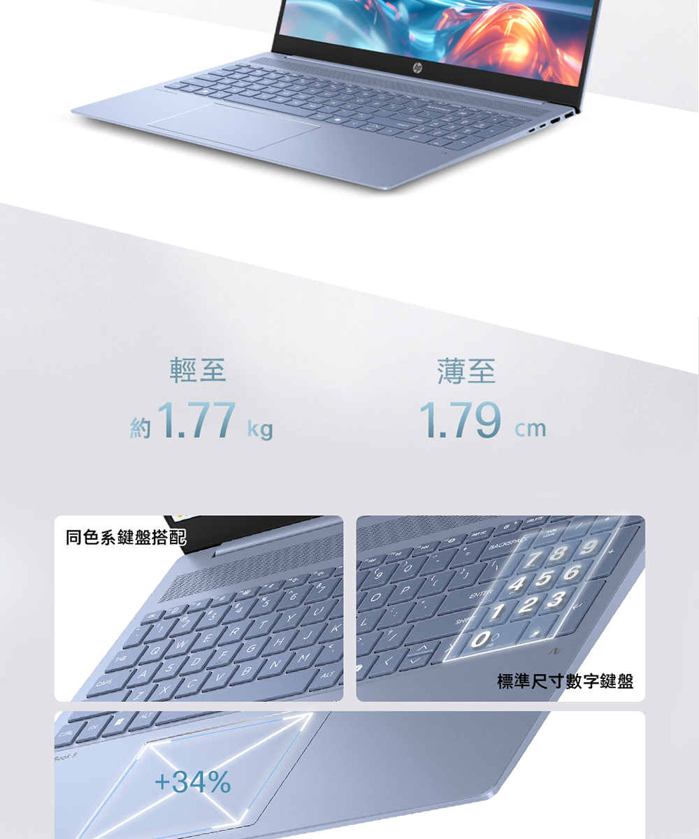 機型:HP OmniBook 5 AI 16-af1092TU處理器:Intel Core Ultra 7-255U(最高 5.1 GHz P-core Max Turbo / 4.8 GHz E-core Max Turbo;24MB L3 Cache;6 P-cores + 8 E-cores + 2 LP E-cores,16 執行緒,13 TOPS NPU)記憶體:32GB LPDDR5x-7467 MT/s(內建,無法擴充)硬碟機/轉速:1TB PCIe Gen4x4 NVMe M.2 SSD顯示晶片:Intel Graphics作業系統:Windows 11 Pro螢幕:16 吋 WUXGA (1920 x 1200) IPS 廣視角,300 nits,不閃頻,低藍光無線通訊:Wi-Fi 6 (802.11ax) 2×2 + Bluetooth 5.4網路攝影機:1080p IR Camera with TNR + 物理鏡頭開關電池:HP Long Life 3-cell 59Whr(支援 30 min 50% 快充)尺寸:35.7 x 25.4 x 1.79-1.86 cm重量:1.77 kg傳輸介面:• USB-A:1 x USB-A 10Gbps / 1 x USB-A 5Gbps• USB-C:2 x USB-C 10Gbps(支援 PD、資料傳輸、USB 電力供應與視訊輸出 DP 1.4a up to 4K@60Hz)• HDMI:HDMI 2.1(最高支援 4K @60Hz 外接顯示)• 3.5mm 耳機麥克風二合一孔● USB 埠支援 Sleep 充電(Type-C 支援)藍牙:BT 5.4喇叭/音效:Dual Speakers / DTS:X® Ultra 音效,支援 HP Audio Boost 1.0內建麥克風:雙陣列數位麥克風鍵盤:背光鍵盤(藍色)Copilot 鍵:Yes指紋辨識:No讀卡機:NoRJ-45:No支援 Miracast:Yes配件:• OmniBook 5 AI 16 主機• HP 65W Type-C Adapter