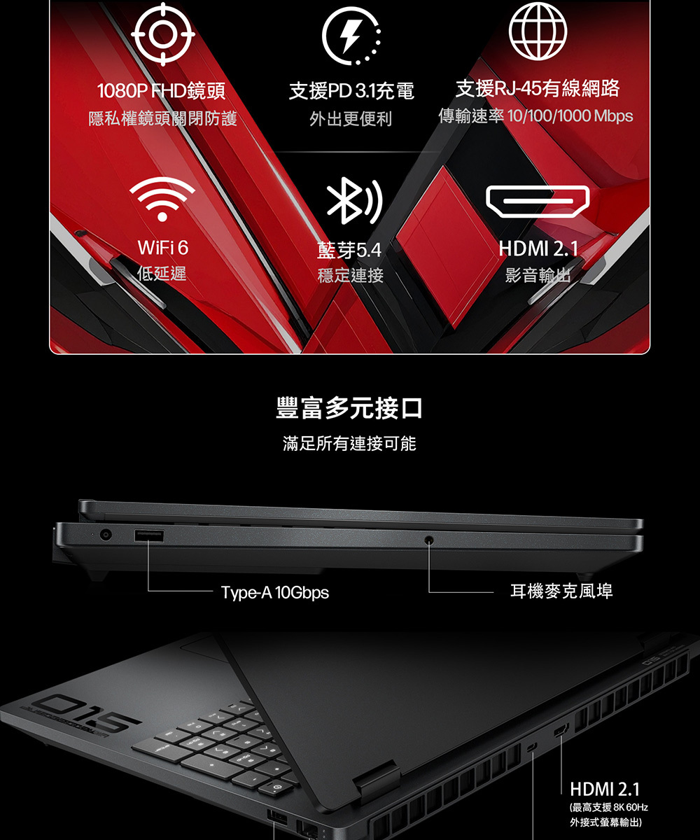鍵盤:四區背光鍵盤 / 26鍵防鬼鍵 / 獨立數字鍵盤