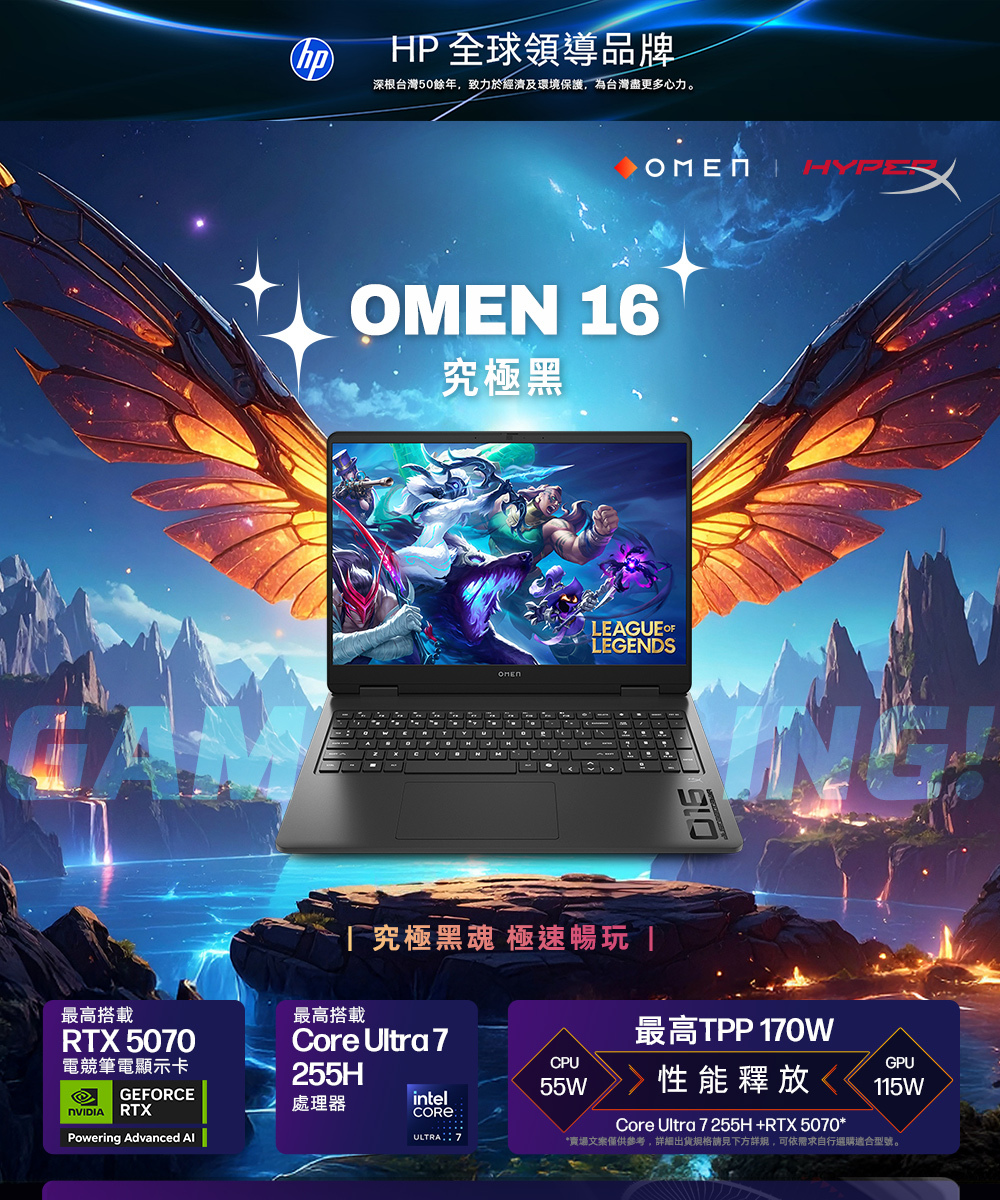 機型:HP OMEN Gaming Laptop 16-am0375TX 究極黑