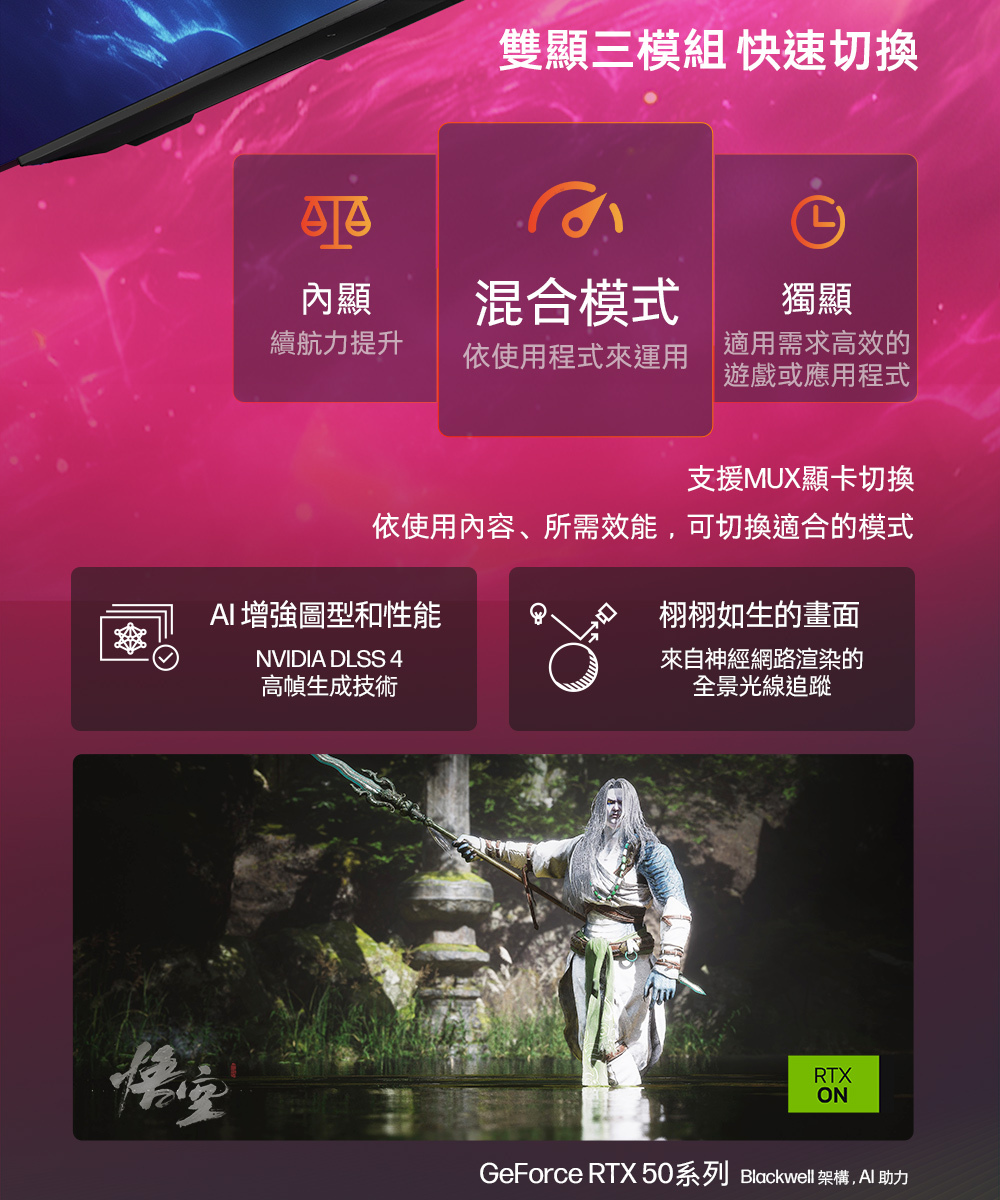 顯示卡:NVIDIA GeForce RTX 5070 8GB GDDR7 + Intel Arc 140T(支援 MUX)