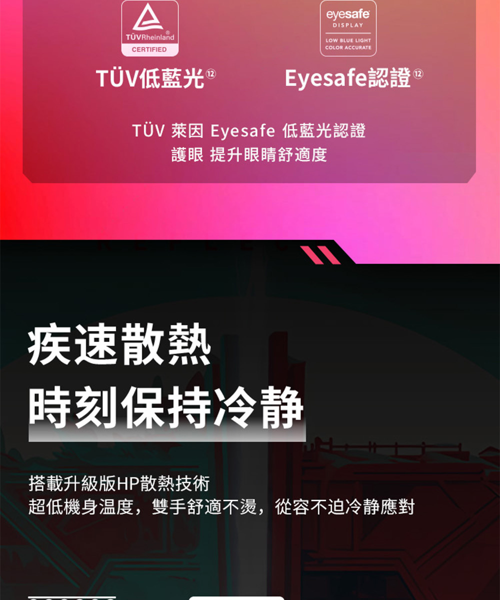 ◊ TUV+Eyesafe認證, 低藍光螢幕降低對眼睛的傷害, 且畫面能接近真實