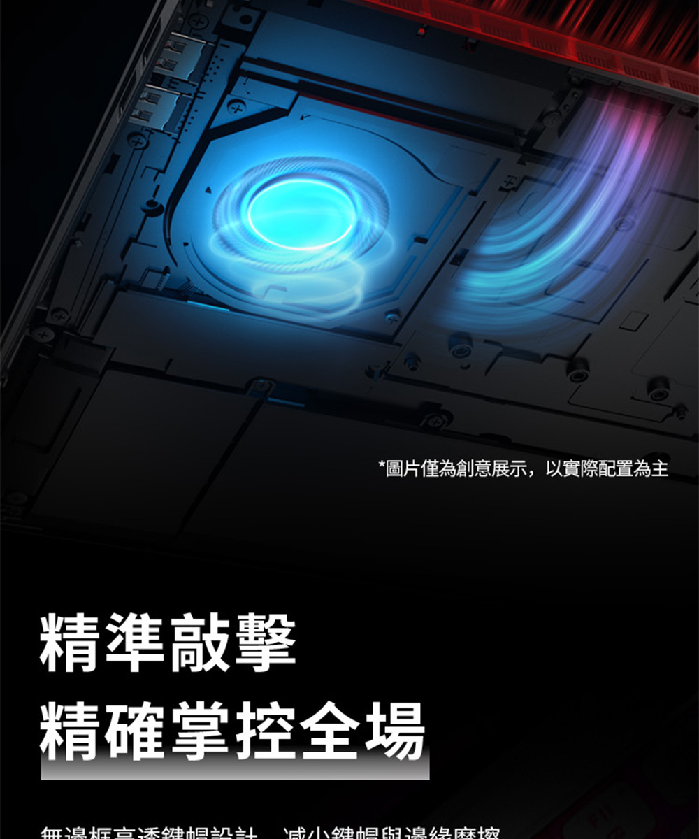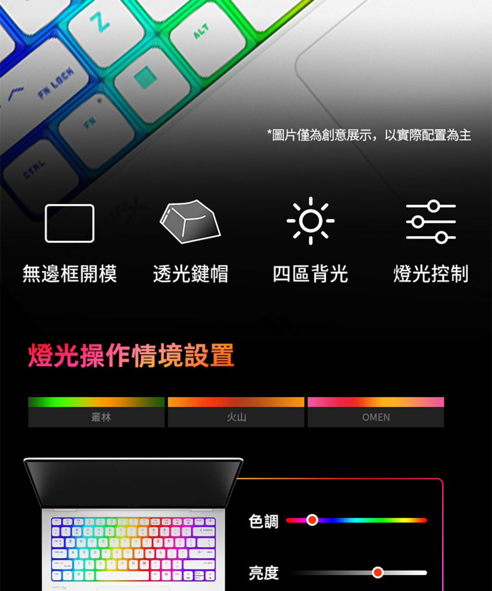 ◊ 四區RGB背光鍵盤設計, 支援個人化設定帶出自我風格