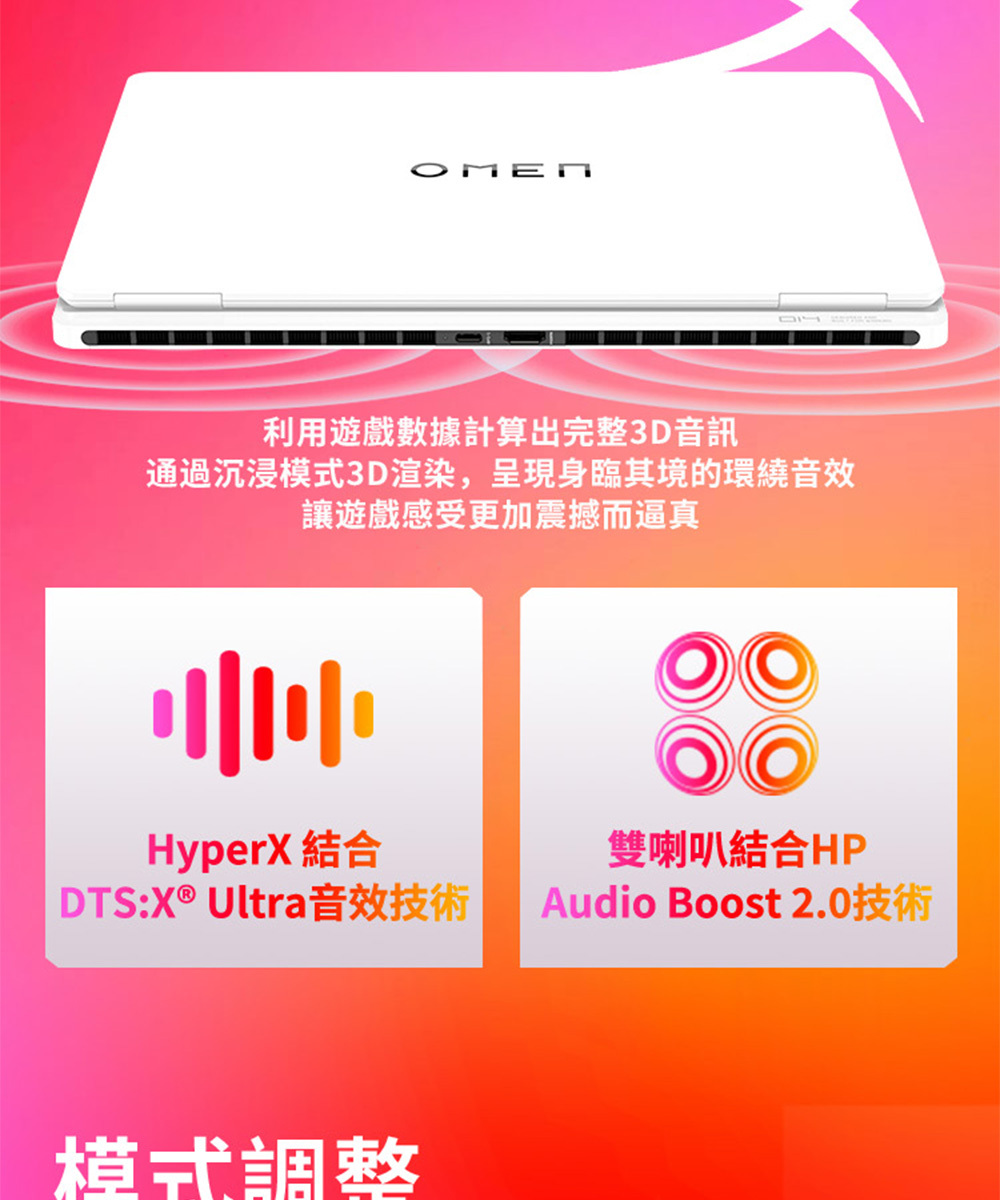 ◊ DTS:X® Ultra音效技術, 利用遊戲數據計算出完整3D音訊,通過沉浸模式3D渲染,呈現身臨其境的環繞音效,讓遊戲感受更加震撼而逼真