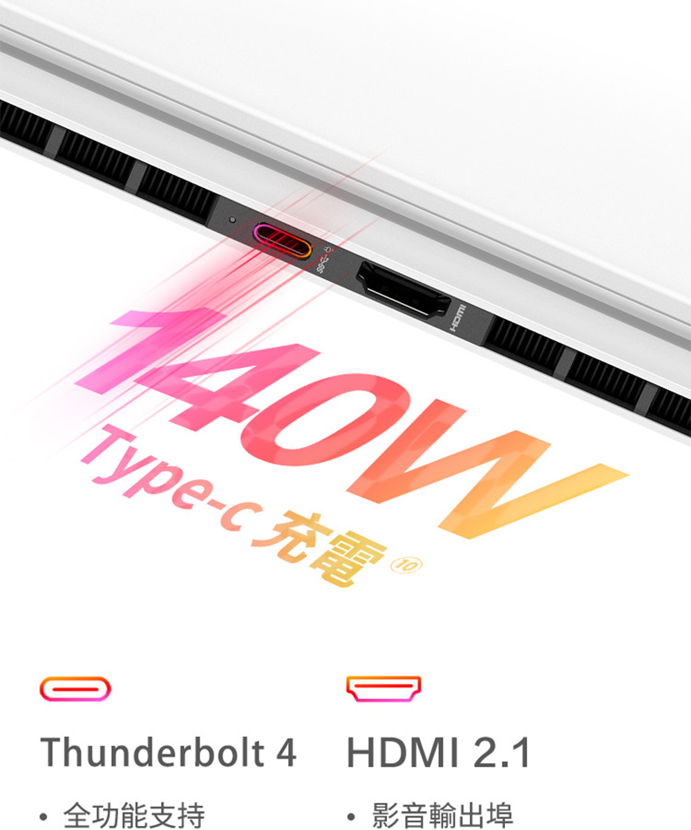 1 x Thunderbolt 4 (Type-C 40Gbps, 支援PD / 資料傳輸 / USB供電 / DP 2.1, up to 8K@60Hz)