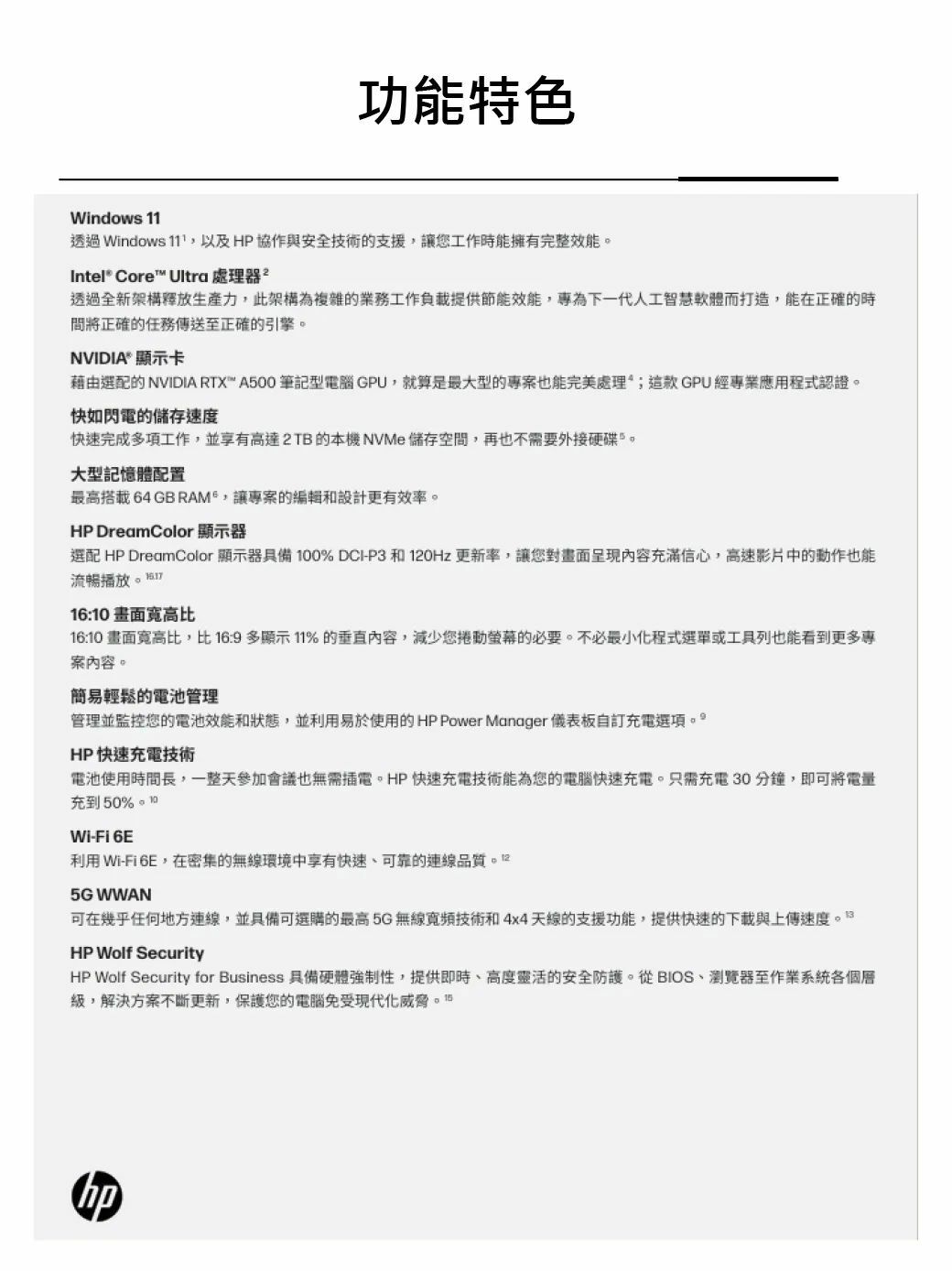 電池:HP Long Life 3-cell, 56 Whr Polymer, 支援快充約30分鐘50%