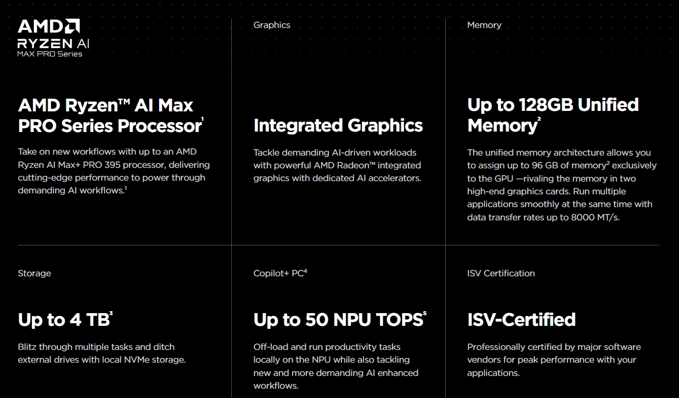 處理器 :Ryzen AI MAX+ PRO 395 16C / 高達 5.1 / 3.0 GHz